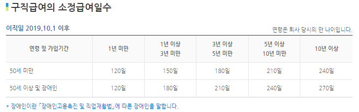 구직급여(실업급여) 예상지급일 수는 퇴직 당시 연령과 고용보험 가입기간에 따라 최소 120일 최대 270일까지로 계산됩니다.